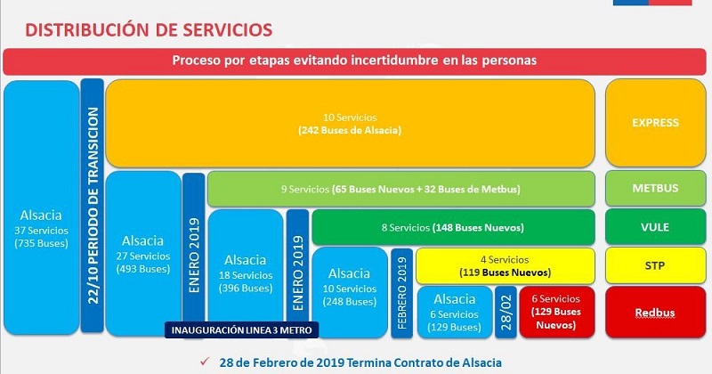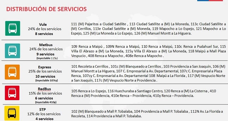 Luego, en enero de 2019 se traspasarán nueve servicios a Metbus y ocho a Vule.