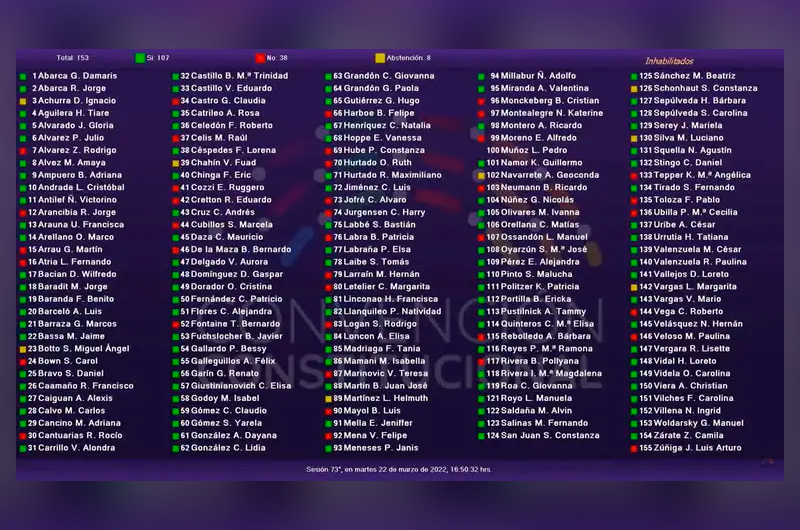 Por otra parte, también se visó el artículo 19 que dice relación con “la justicia vecinal y los juzgados vecinales”: “La justicia vecinal se compone por los juzgados vecinales y los centros de justicia vecinal. En cada comuna del país que sea asiento de una municipalidad habrá, a lo menos, un juzgado vecinal que ejerce la función jurisdiccional respecto de todas aquellas controversias jurídicas que se susciten a nivel comunal que no sean competencia de otro tribunal y de los demás asuntos que la ley les encomiende, conforme a un procedimiento breve, oral, simple y expedito”, fue aprobado por 111 votos.