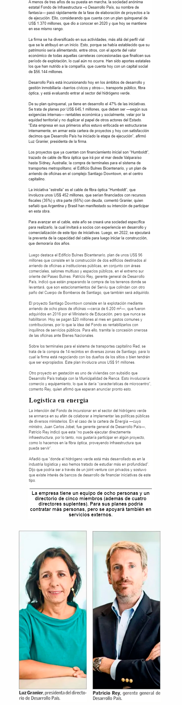 EL MERCURIO – Desarrollo país está incursionando hoy en los ámbitos de desarrollo y gestión inmobiliaria, transporte público, fibra óptica, y está evaluando entrar al sector del hidrógeno verde.