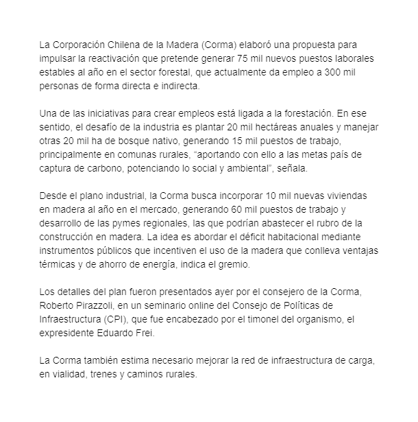 EL MERCURIO – La plantación de 20 mil ha anuales y la construcción de 10 mil casas cada ejercicio con algunas de las iniciativas.
