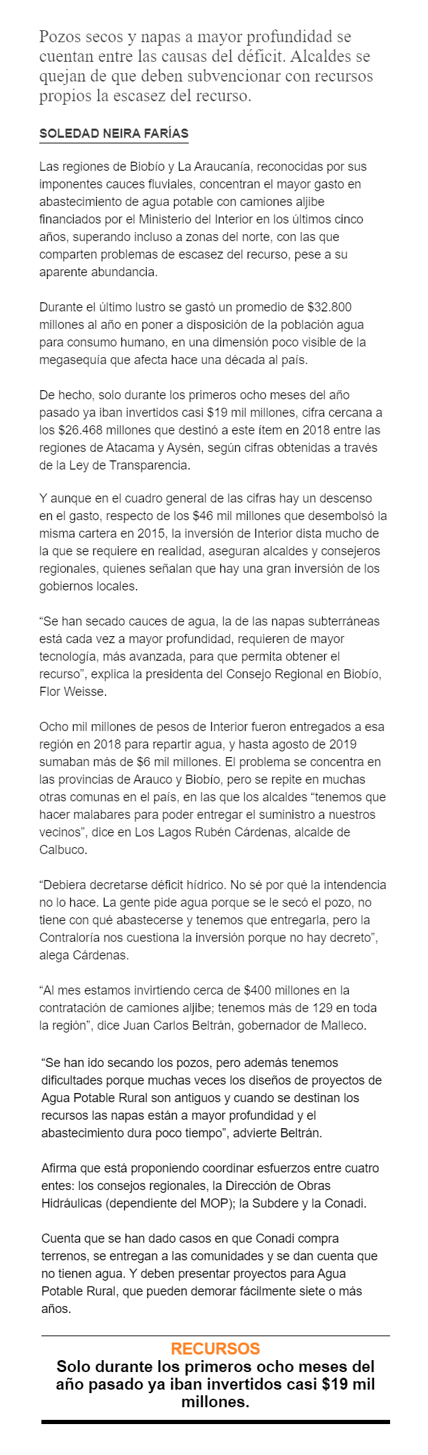 EL MERCURIO – Pozos secos y napas a mayor profundidad se cuentan entre las causas del déficit.