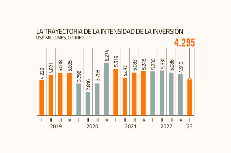 DIARIO FINANCIERO – Coherente con el ajuste de la economía, los recursos destinados a nuevos proyectos parecen reducirse. De hecho, la intensidad de la inversión volvió a caer durante el período enero-marzo de este año, tanto en comparación con el cuarto anterior (-11,3%) como frente al mismo lapso de 2022 (-18%), según la Corporación de Bienes de Capital (CBC).