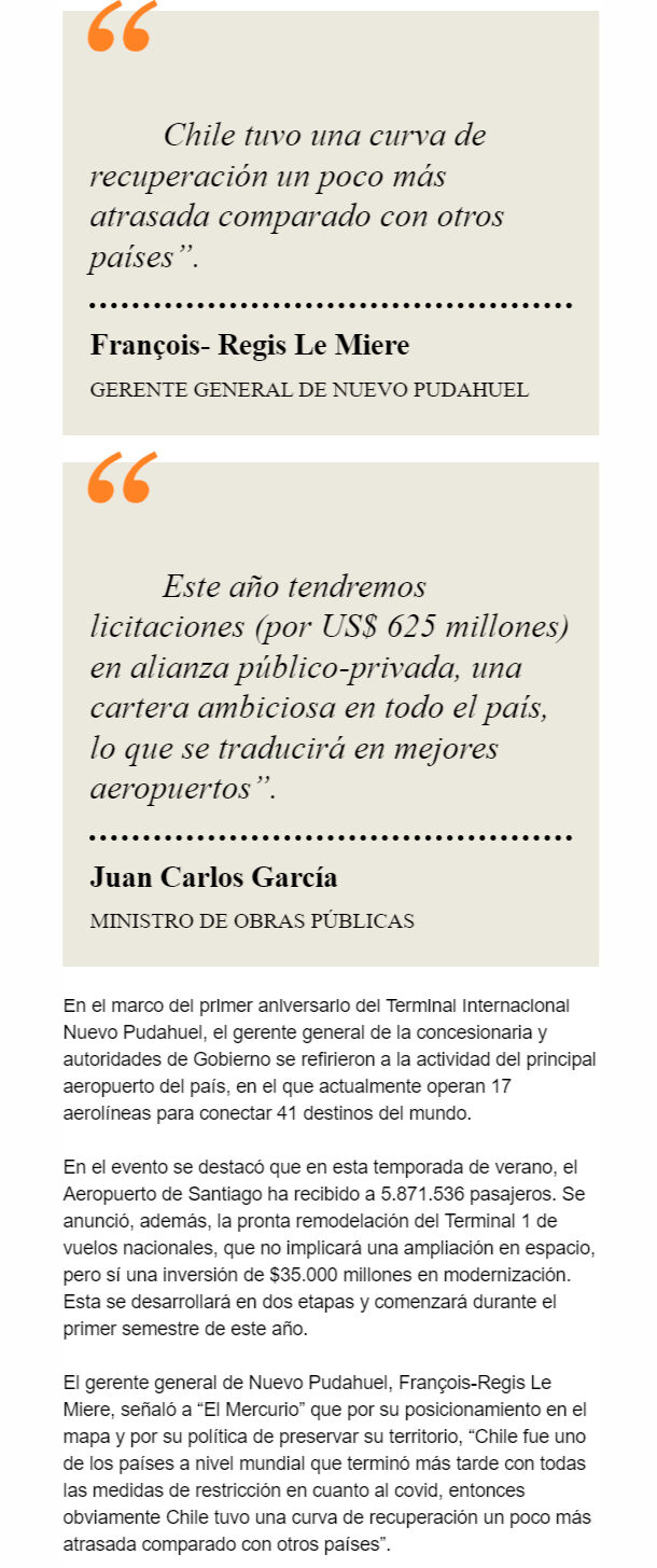 EL MERCURIO – La concesionaria y actores del Gobierno evaluaron y proyectaron la actividad del terminal internacional en su primer aniversario.