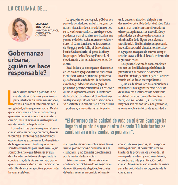 DIARIO FINANCIERO – El deterioro de la calidad de vida en el Gran Santiago ha llegado al punto de que cuatro de cada 10 habitantes se cambiarían a otra ciudad si pudieras