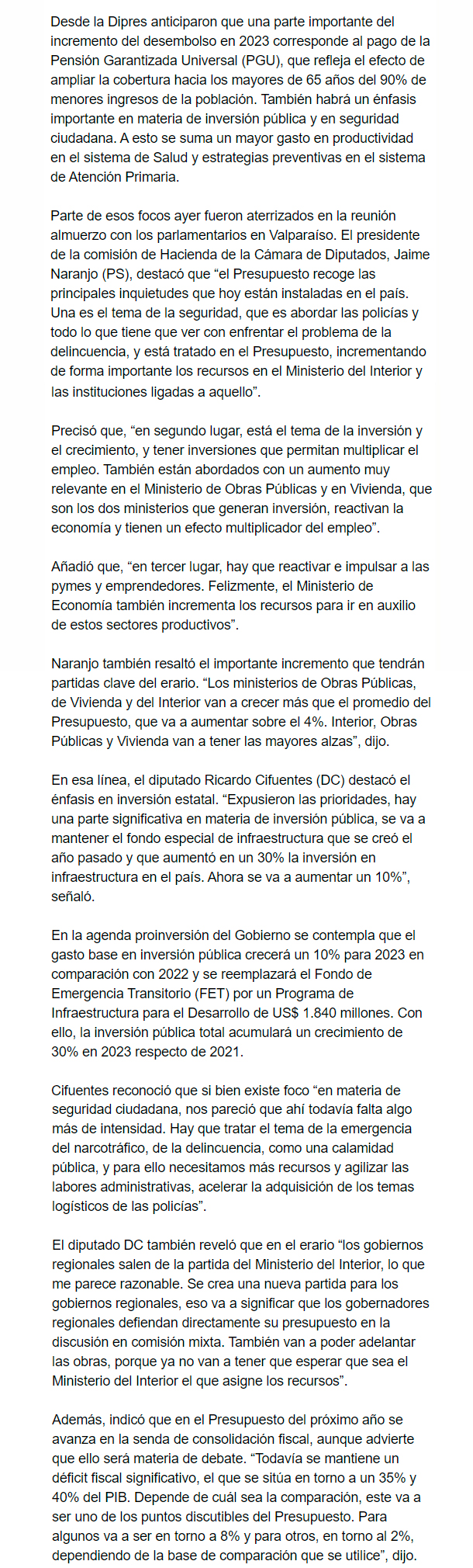 Fuente: El Mercurio, Jueves 29 de Septiembre de 2022