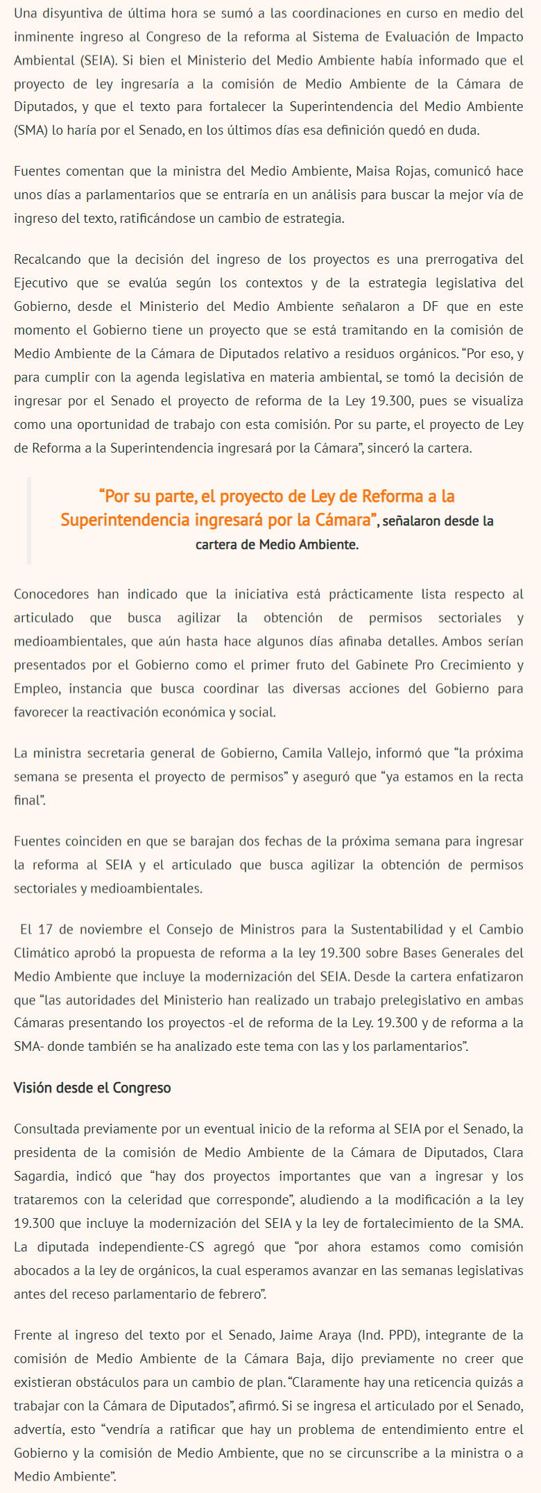 DIARIO FINANCIERO – Trascendió que el Ejecutivo baraja dos fechas de la próxima semana para ingresar el proyecto y el articulado que busca agilizar la obtención de permisos sectoriales y medioambientales.