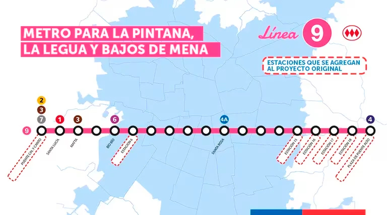La Pintana también será una de las comunas que por primera vez tendrá conexión de la línea de metro. La alcaldesa, Claudia Pizarro (DC), comentó que serán tres estaciones que abarcarán su comuna. Asimismo, valoró el cambio original del proyecto, puesto que en un inicio el trazado solo llegaba hasta Gabriela, Paradero 37 de Santa Rosa, pero que ahora con la L9 podrá llegar a vecinos de sector de El Castillo.