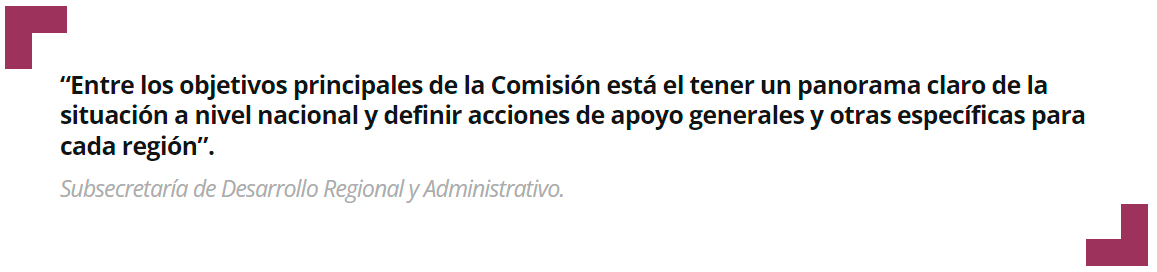 Desde la Subdere comentaron que, si bien se oficializó ayer, “la instancia ya ha tenido 8 sesiones, desde junio del 2022”. Asimismo, subrayaron que “entre sus objetivos principales está el tener un panorama claro de la situación a nivel nacional y definir acciones de apoyo generales y otras específicas para cada región, trabajando bajo una estrategia donde se han definido ejes fundamentales que apuntan a mejorar los procesos de planificación territorial en las regiones, incluyendo las coordinaciones intersectoriales, con la idea de generar carteras de proyectos que respondan rápidamente a las necesidades de cada territorio”.