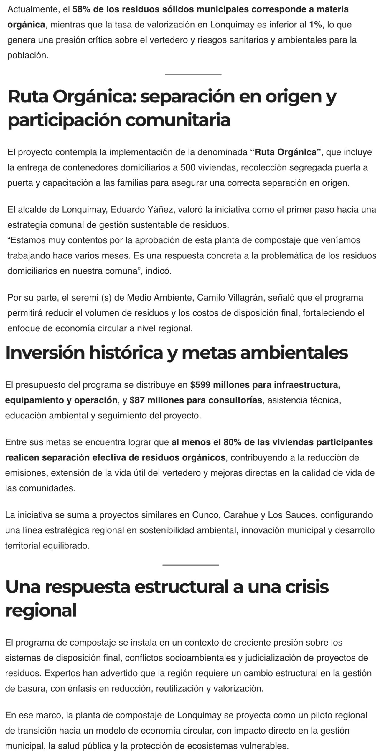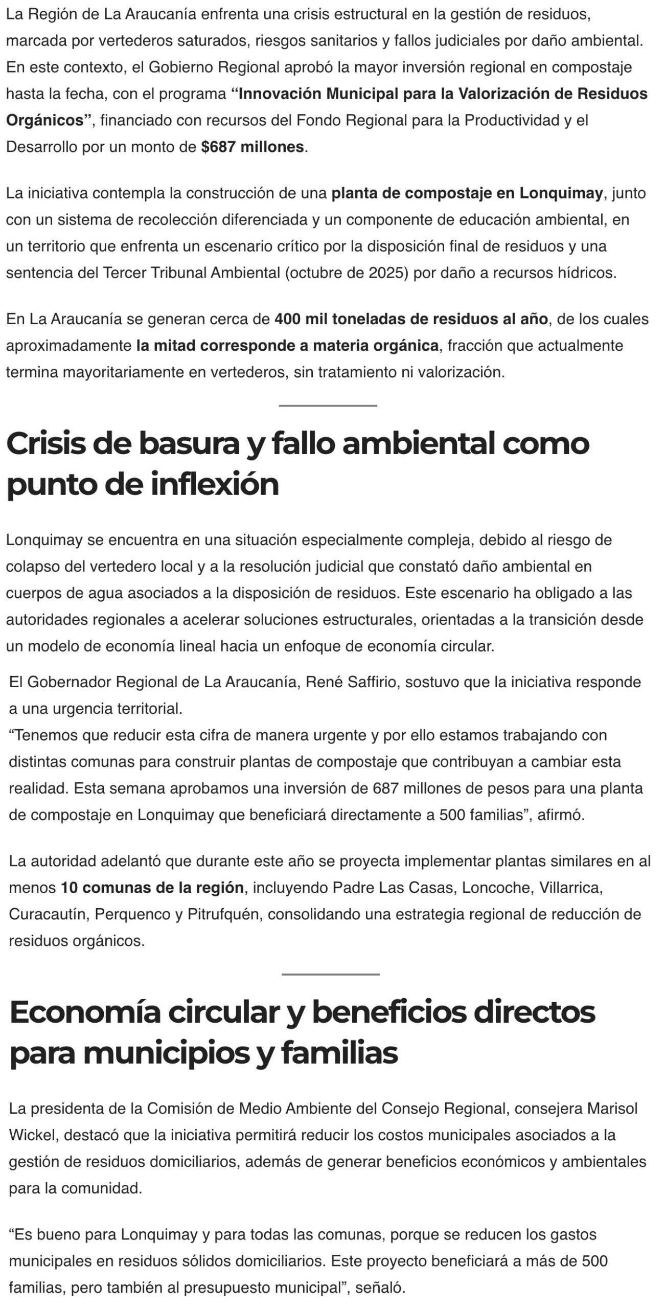 ALERTA NOTICIAS TEMUCO – La iniciativa busca enfrentar el colapso del vertedeero local un fallo ambiental vigente, en una región donde la basura orgánica supera el 50% de los residuos domiciliarios y la valorización no alcanza el 1%.