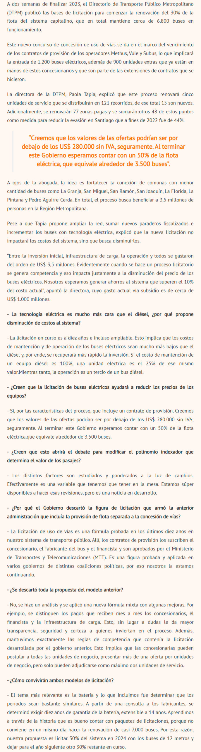 DIARIO FINANCIERO – La directora de la DTPM, Paola Tapia, contó que aplicará una fórmula mixta, pero descartó continuar con el modelo que separa la flota del concesionario de vías.