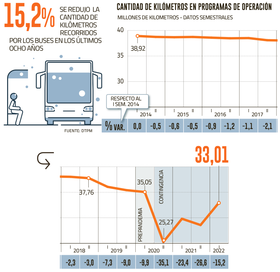 Tapia asevera que la situación es “brutal” ya que, según su análisis, la reducción de kilómetros recorridos en los días laborales es de 7%, mientras que en los fines de semana es de 20%. De hecho, explicó que en julio se presentarán los nuevos programas de operaciones que incluyen 18 correcciones al sistema anterior, con más servicios y recorridos.