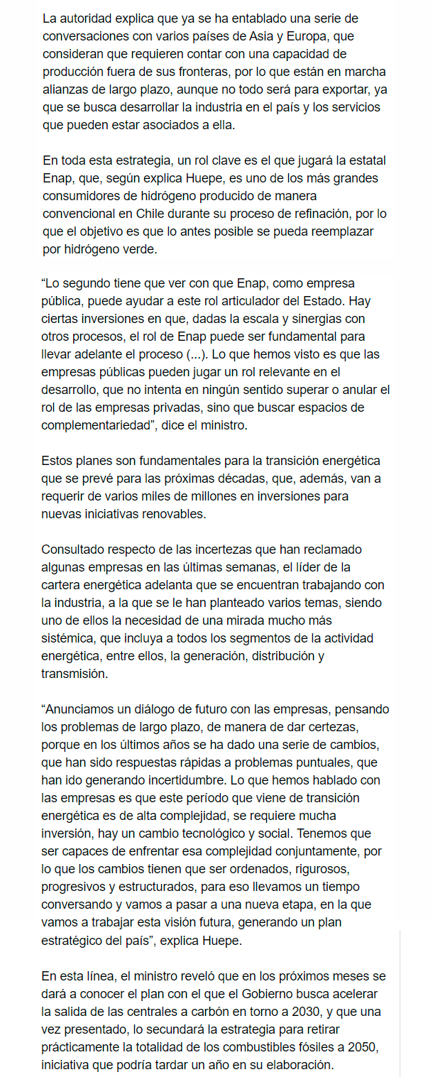 EL MERCURIO – El líder de la cartera también adelanta la elaboración de una estrategia junto con las empresas para abordar la transición energética.