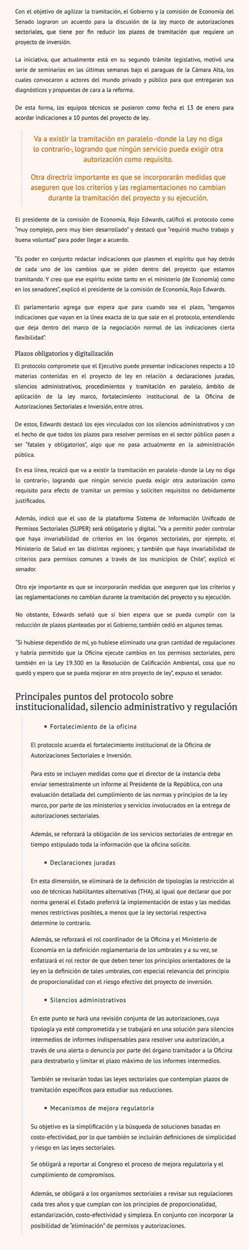 DIARIO FINANCIERO – Un eje se relaciona con avanzar en que las autorizaciones sectoriales puedan obtenerse en paralelo y que una no dependa de la otra.