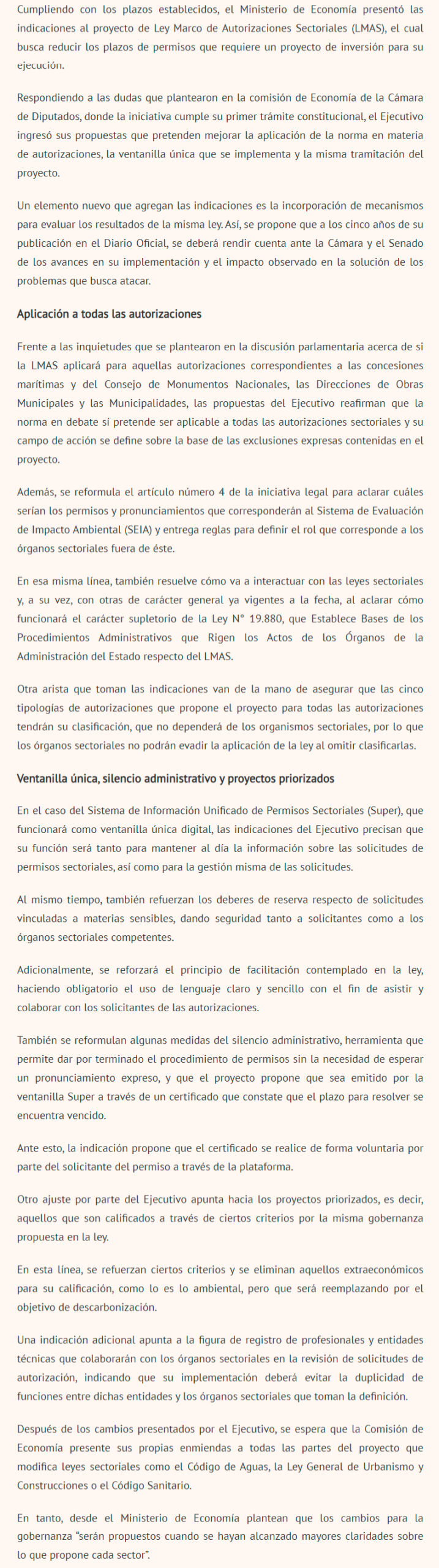DIARIO FINANCIERO – Cambios introducidos por Economía a proyectos aclaran que la norma aplicará para autorizaciones correspondientes a concesiones marítimas y al Consejo de Monumentos Nacionales