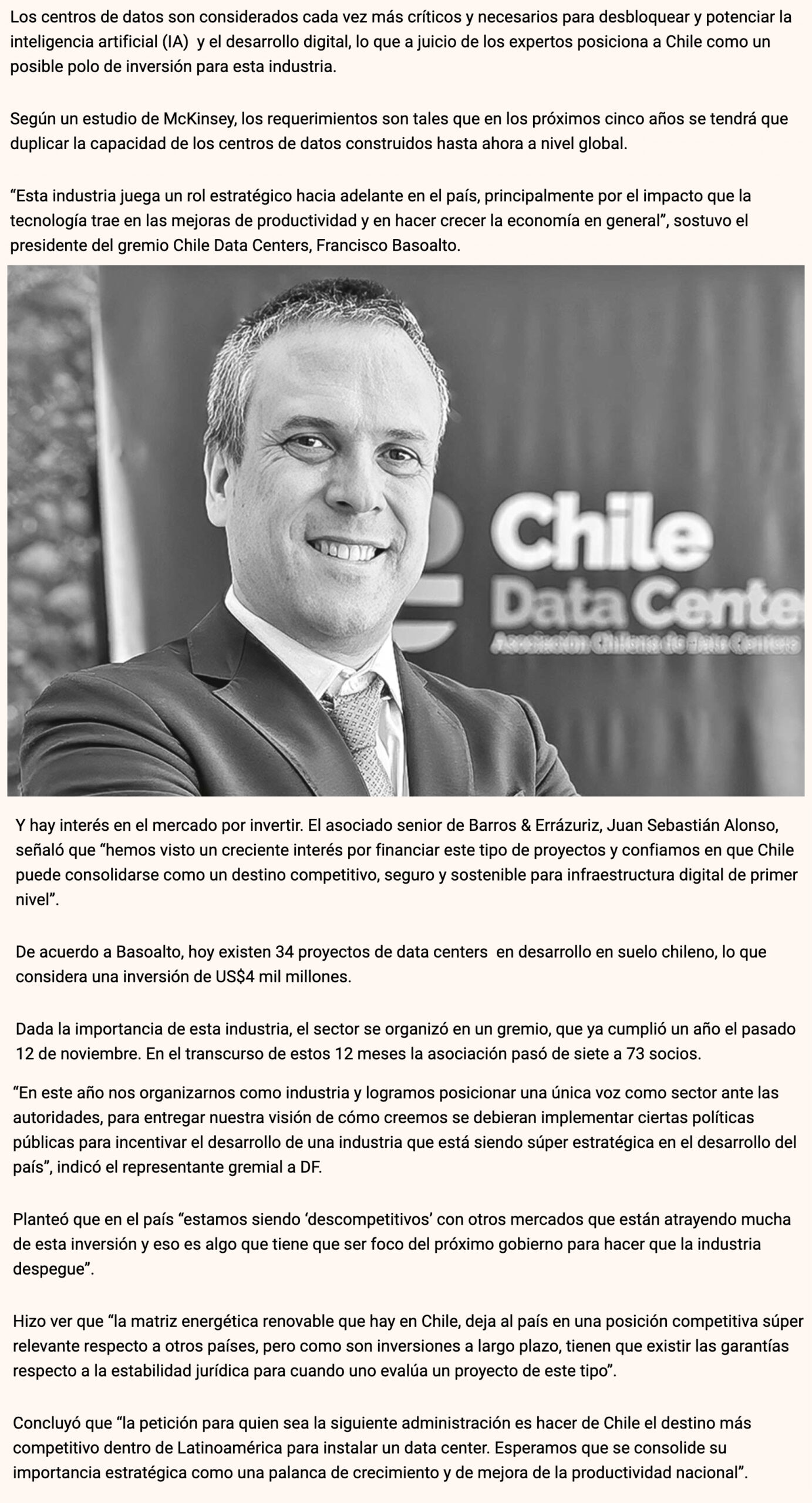 DIARIO FINANCIERO – Según un estudio de McKinsey, los requerimientos son tales que en los próximos cinco años se tendrá que duplicar la capacidad de los centros de datos construidos hasta ahora a nivel global.