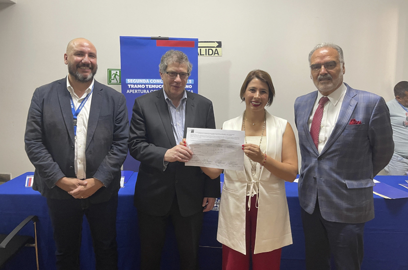 DGC (MOP) – La empresa Grupo Costanera S.pA. presentó la oferta económica más atractiva para adjudicarse la Segunda Concesión Ruta 5 Tramo Temuco-Río Bueno, que contempla una inversión de 836 millones de dólares, con una propuesta por el tramo A que considera UF 28.066.500 de Ingresos Totales de la Concesión (ITC).
