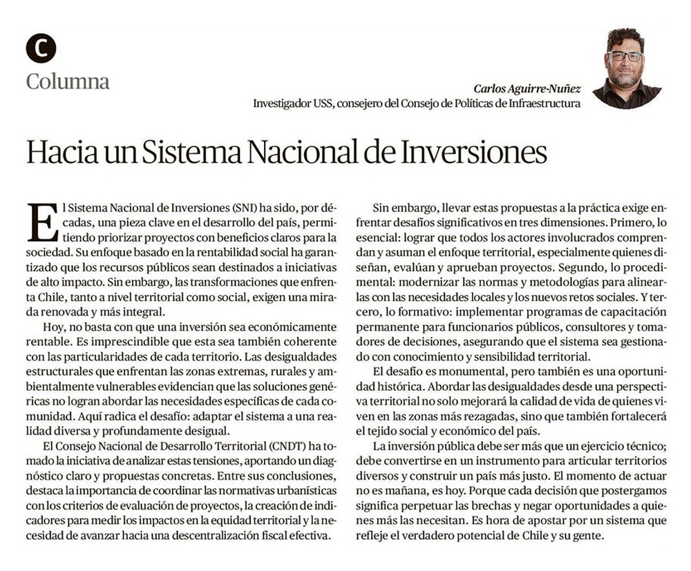 EL MERCURIO DE VALPARAÍSO – La inversión pública debe ser más que un ejercicio técnico; debe convertirse en un instrumento para articular territorios diversos y construir un país más justo