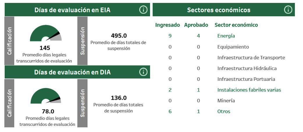 Entre otros datos incluidos en el panel, se puede observar el sector económico al que pertenecen las iniciativas: en Energía han ingresado 9, de los cuales 4 han sido aprobados; 2 corresponden a Instalaciones fabriles varias, con 1 aprobado; y 6 ingresaron como ‘Otros’, siendo ya aprobado 1.