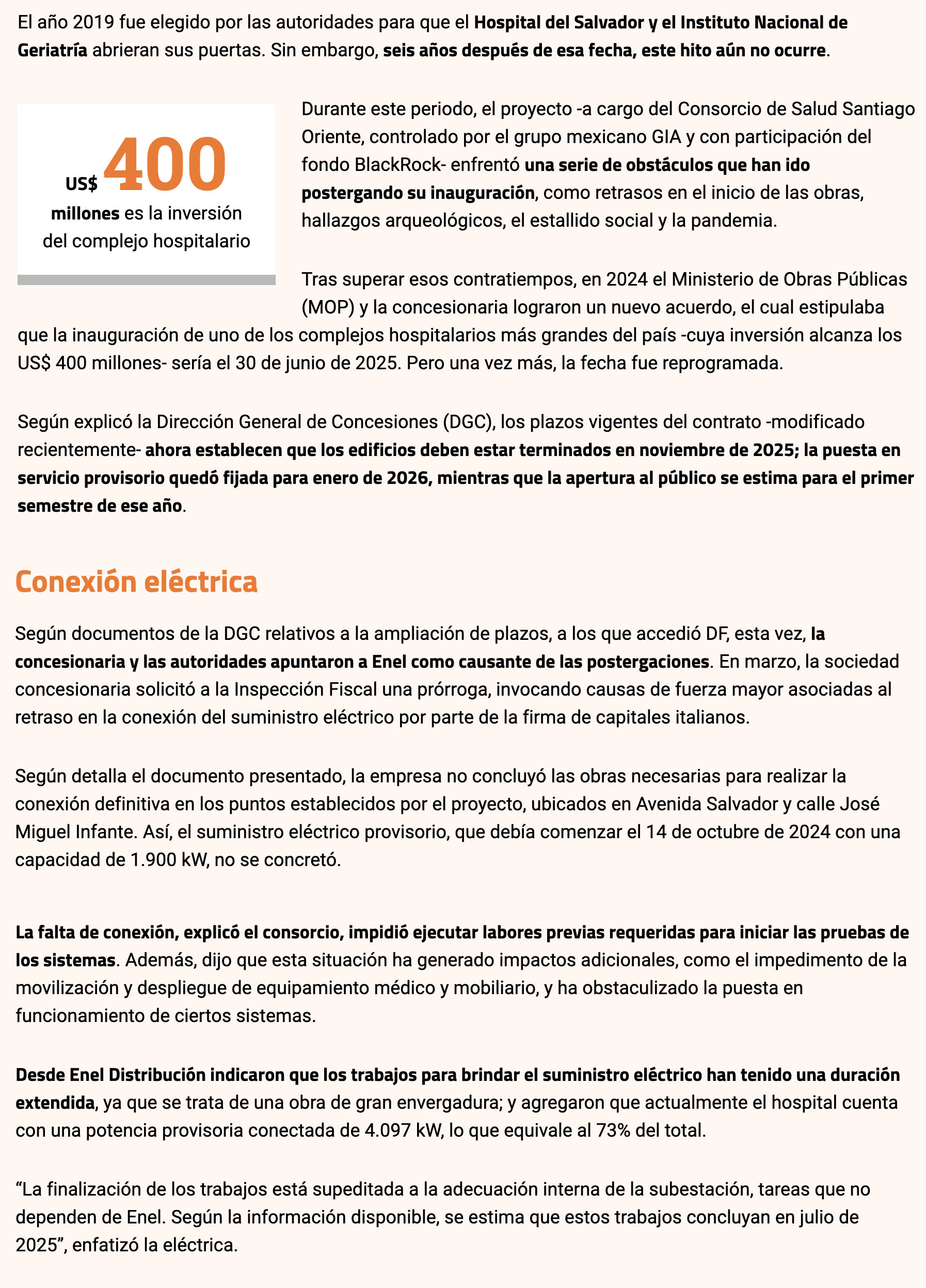 DIARIO FINANCIERO – La apertura del complejo ya se pospuso, nuevamente, para 2026. Esta vez, la concesionaria y el MOP acusaron demoras en la conexión eléctrica por parte de Enel.