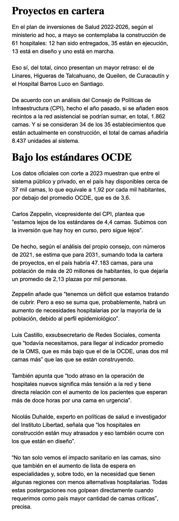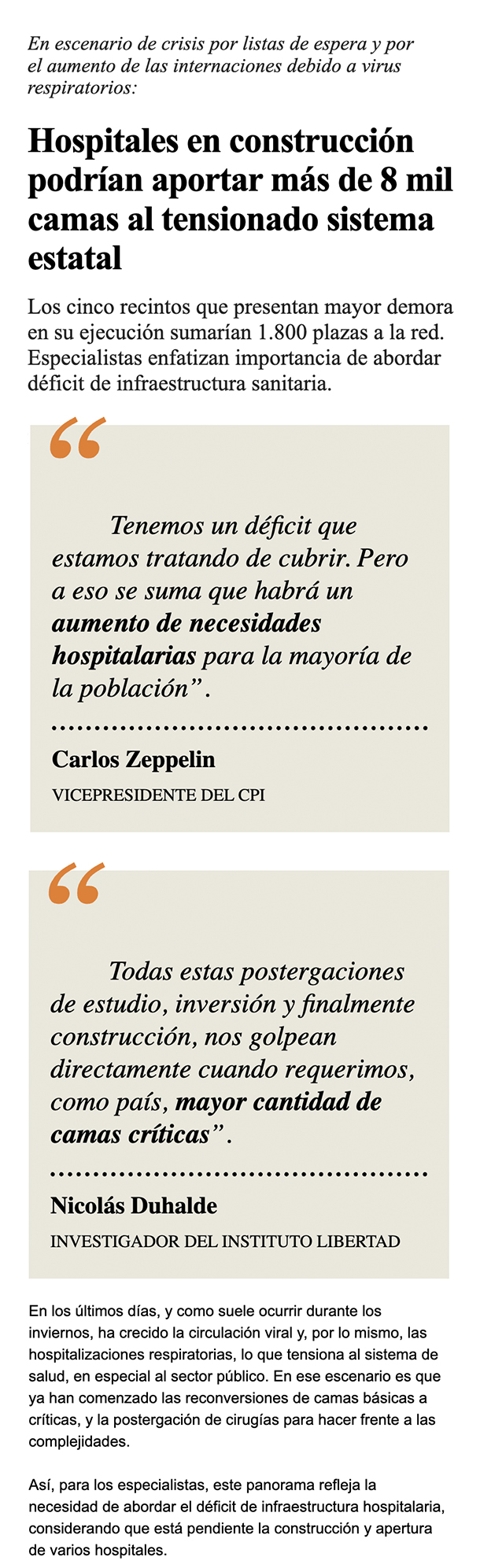 EL MERCURIO – Los cinco recintos que presentan mayor demora en su ejecución sumarían 1.800 plazas a la red. Especialistas enfatizan importancia de abordar déficit de infraestructura sanitaria.