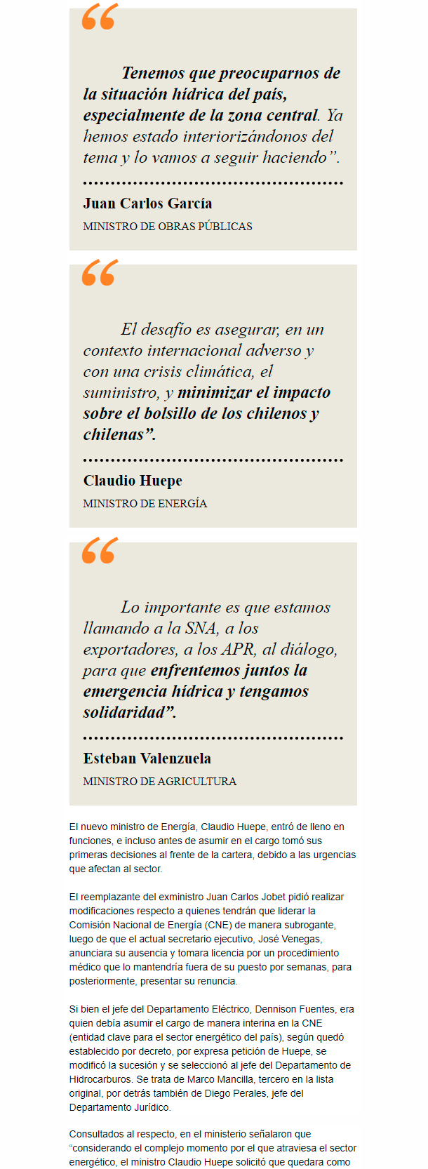 EL MERCURIO – El titular de Energía realizó modificaciones para la sucesión de las próximas autoridades en la Comisión Nacional de Energía, ante “complejo momento que atraviesa el sector”.