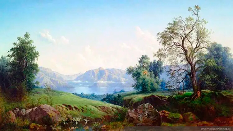 Uno de los registros más antiguos de la laguna es un óleo del pintor Onofre Jarpa, que la muestra con abundante agua y una frondosa y generosa vegetación, que data de 1878.