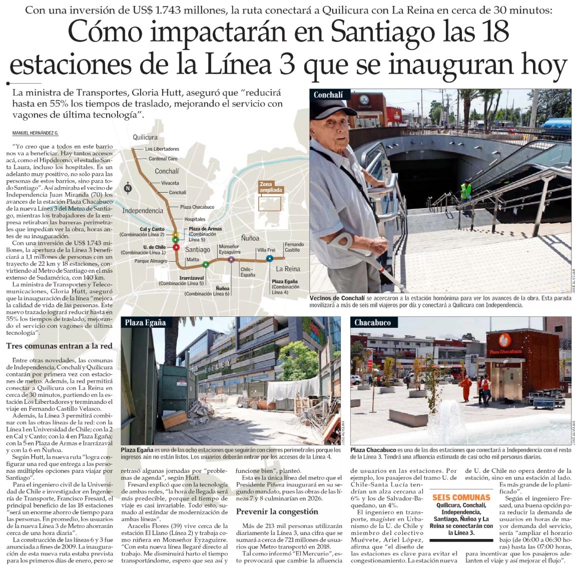 Cómo impactará en Santiago las 18 estaciones de la Línea 3 que se inauguran hoy