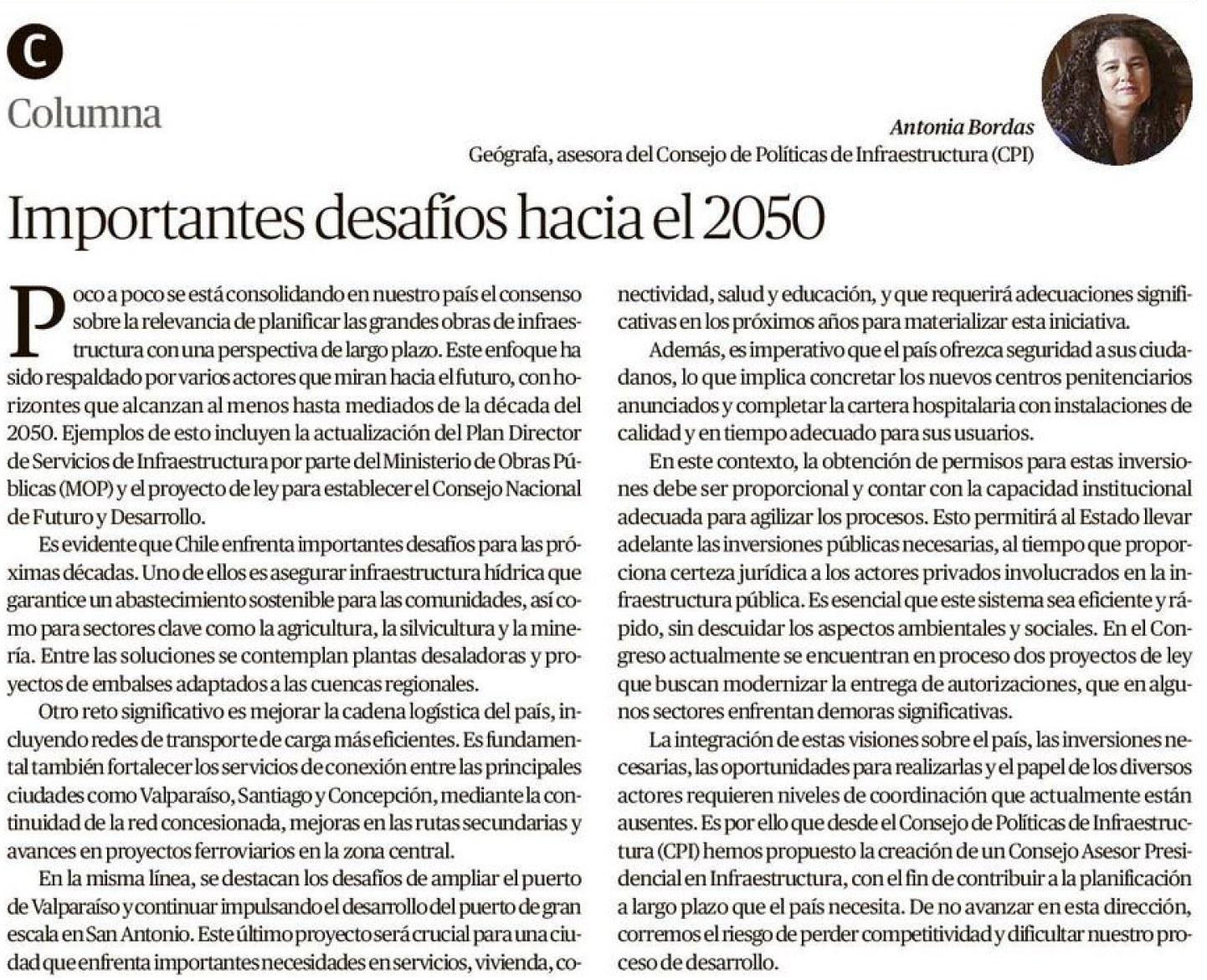 EL MERCURIO DE VALPARAÍSO – Poco a poco se está consolidando en nuestro país el consenso sobre la relevancia de planificar las grandes obras de infraestructura con una perspectiva de largo plazo