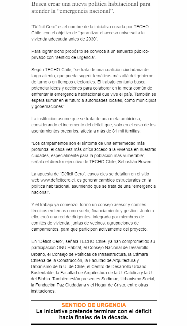 EL MERCURIO – Busca crear una nueva política habitacional para atender la “emergencia nacional”.