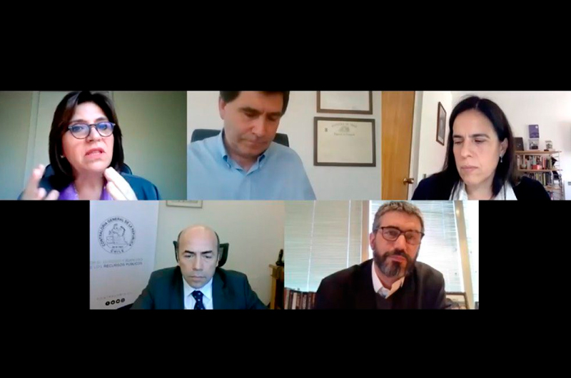 En el primero de estos encuentros se analizaron los deberes del Estado y de los ciudadanos para la protección del medio ambiente, en un panel que estuvo integrado por el contralor general, Jorge Bermúdez; Dominique Hervé, académica de la Universidad Diego Portales; Ricardo Irarrázabal, académico de la Pontificia Universidad Católica; y Ana Lya Uriarte, académica de la Universidad de Chile.