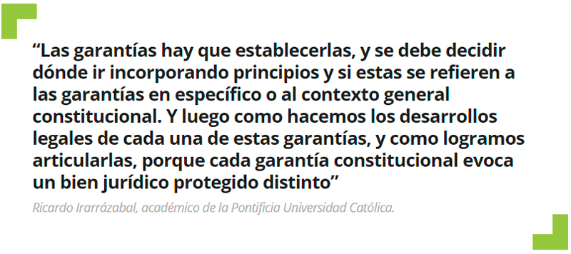 “Las garantías hay que establecerlas, y se debe decidir dónde ir incorporando principios y si estas se refieren a las garantías en específico o al contexto general constitucional. Y luego como hacemos los desarrollos legales de cada una de estas garantías, y como logramos articularlas, porque cada garantía constitucional evoca un bien jurídico protegido distinto. Obviamente, en los temas ambientales resulta muy relevante como se zanjan las tensiones entre lo ambiental, especialmente con lo económico, y también con lo social”.