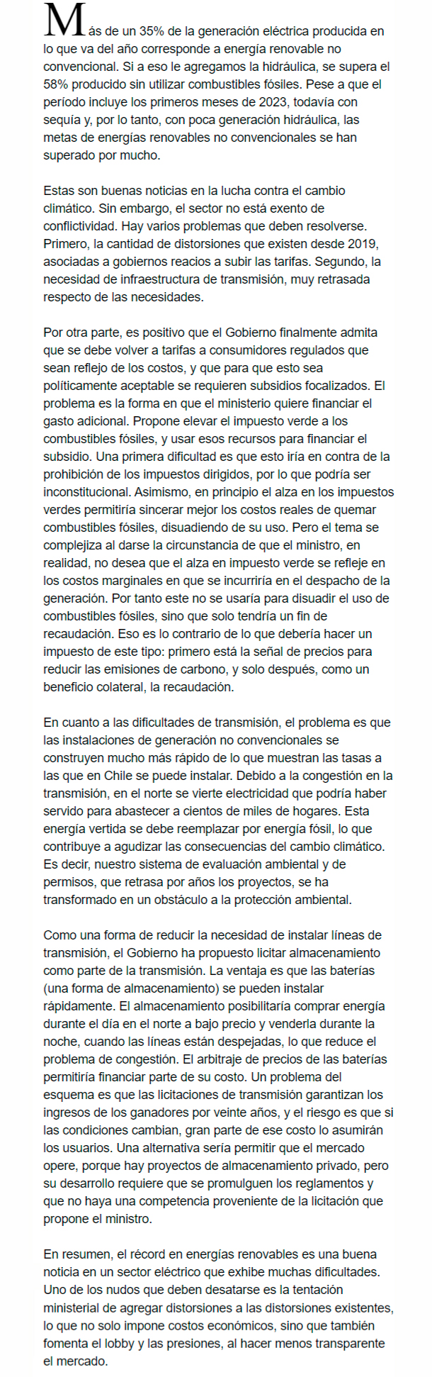 EL MERCURIO – Son buenas noticias la lucha contra el cambio climático. Sin embargo, el sector no está exento de conflictividad.