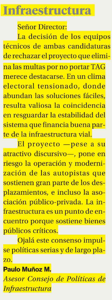 LA SEGUNDA – La decisión de los equipos técnicos de ambas candidaturas de rechazar el proyecto que elimina las multas por no portar TAG merece destacarse.