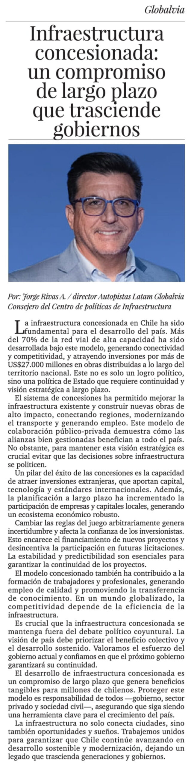 LA TERCERA – La infraestructura concesionada en Chile ha sido fundamental para el desarrollo del país. Más del 70% de la red vial de alta capacidad ha sido desarrollada bajo este modelo