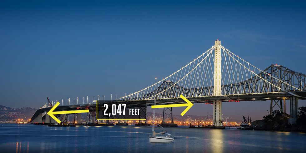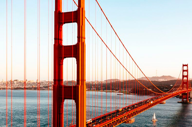 La zona de la bahía de San Francisco tiene la suerte de contar con dos puentes de renombre internacional. El nuevo Bay Bridge East Span, un proyecto de 6.400 millones de dólares, sustituye a un puente sísmicamente inestable. Cuenta con el mayor vano de suspensión autoanclado del mundo, un vano de 624 metros anclado por una única torre de 160 metros de altura que sostiene un único cable principal de 1,6 kilómetros de longitud que contiene 17.399 hilos de acero.