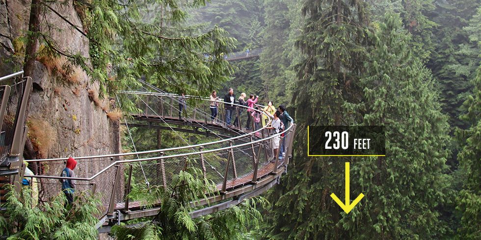 Al lado del histórico puente colgante de Capilano, el Cliffwalk se inauguró en 2011 con 213 pies de puente colgando de un acantilado a unos 70 metros sobre un cañón. El puente puede soportar algo más de 43.000 kilos de peso, anclado a las paredes del acantilado. Para que el cañón natural del río Capilano sea aún más impresionante, algunas secciones del Cliffwalk cuentan con pasarelas con fondo de cristal. Sin duda, no es apto para los que sufren de miedo a las alturas.