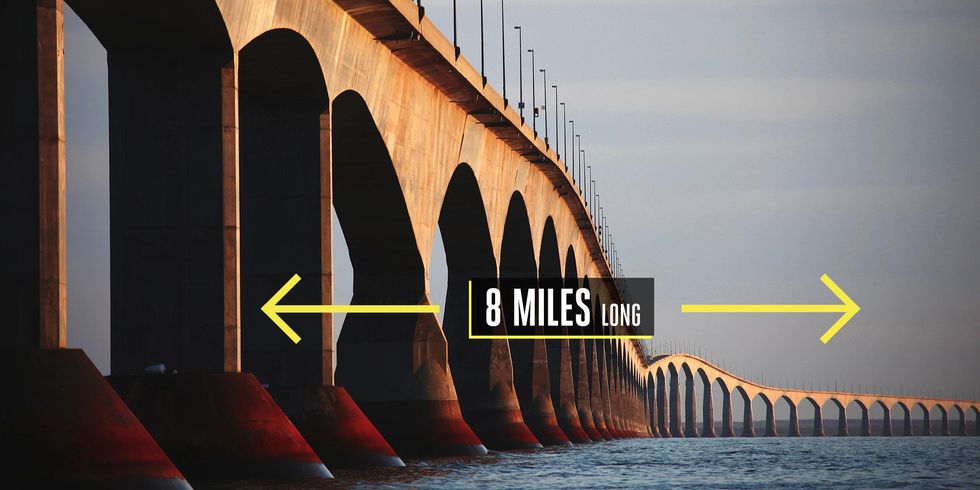 Con casi 13 kilómetros de longitud, une la Isla del Príncipe Eduardo con el territorio continental de Nuevo Brunswick, en la costa este de Canadá, y es el puente más largo sobre el hielo. Inaugurado en 1997, el puente no gana demasiados concursos de estética, pero la estructura de vigas de cajón de hormigón es robusta para soportar el viento, las olas y el tiempo en el paso de Abegweit del estrecho de Northumberland. Con 62 pilares, el Puente de la Confederación se eleva unos 40 metros sobre el agua.
