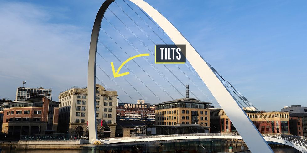 Inaugurado en 2002, este puente peatonal se caracteriza por su inclinación. La estructura curvada atraviesa el río Tyne y se inclina para bajar y subir con el fin de permitir el tráfico de barcos por el puente. Denominado el “Puente del ojo que guiña” debido a su forma, el vano de 125 metros de largo fue bajado en una sola pieza por una de las grúas flotantes más grandes del mundo.