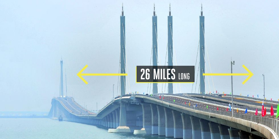 Inaugurado en 2011, el puente de la bahía de Qingdao, en China, sigue ostentando el récord de ser el puente más largo sobre el agua, con casi 42 kilómetros de longitud total. La combinación de puente colgante autoanclado y puente atirantado incluye un diseño en T, ya que una sección del puente que conecta Qingdao y Huangdao se desprende hacia la isla de Huangdao. Con acero y hormigón diseñados para soportar colisiones de barcos, terremotos y otras catástrofes meteorológicas, el puente incluye más de 5.000 pilotes de hormigón.