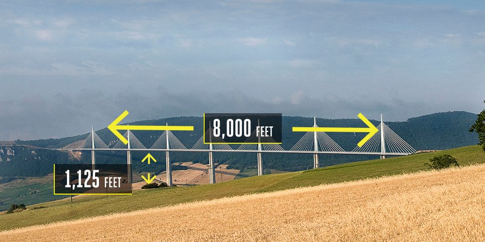 El puente más alto del mundo, con sus 342 metros de altura, se inauguró en 2004 y, en ocasiones, puede elevarse por encima de las nubes. Con más de 2.438 metros de longitud, el viaducto de Millau atraviesa el valle del río Tarn con siete pilares diseñados por Lord Norman Foster. Para construir el puente en sólo tres años, los equipos de trabajo construyeron las torres y luego la calzada, que se deslizó sobre las torres.