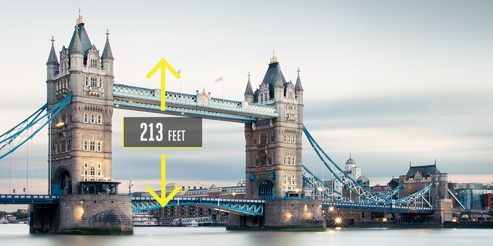 El Tower Bridge se inauguró en 1894 en el lado este de Londres tras un proyecto de ocho años para construir un puente sobre el Támesis. Es un puente de dos estilos: colgante y basculante. Las torres de 65 metros de altura situadas a ambos extremos de un vano de elevación central de 61 metros suspenden el puente hasta la orilla a ambos lados, mientras que sirven de base para el vano basculante que puede subir y bajar para permitir el tráfico de barcos.