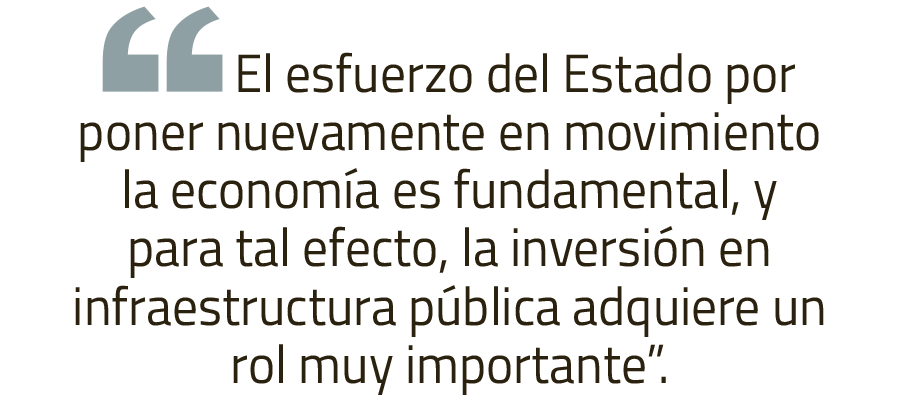 En ese sentido, el esfuerzo del Estado por poner nuevamente en movimiento la economía es fundamental y, para tal efecto, la inversión en infraestructura pública adquiere un rol muy importante. Obras menores en vialidad y riego -intensivas en mano de obra y con alta rentabilidad social-; asegurar el agua potable a las comunidades más abandonadas a través de soluciones permanentes, un programa masivo de obras urbanas relevantes, que en conjunto con los municipios se oriente a superar las brechas que develó el 18-O y el avance en la creación de las condiciones para una digitalización definitiva del país. Todo eso podría conformar una buena carpeta de iniciativas para concentrar el esfuerzo reactivador.