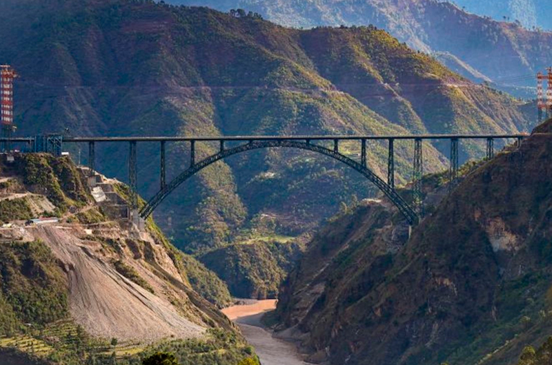El puente de 1.315 metros de largo es parte de un proyecto más amplio para hacer que el valle de Cachemira sea accesible a través de la red ferroviaria india. Además del puente Chenab, el proyecto del enlace ferroviario Udhampur-Srinagar-Baramulla (USBRL) incluye lo que se convertirá en el túnel de transporte más largo del país y el primer puente de cable de Indian Railways.