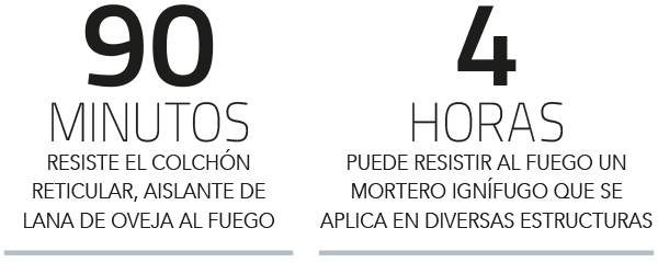 Por ejemplo, uno de sus morteros ignífugos -materiales de aspecto rugoso que se aplica por aspersión en diferentes estructuras- alcanza una resistencia al fuego que puede llegar hasta cuatro horas.