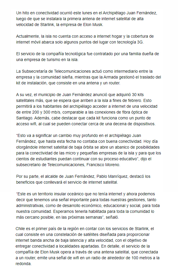 EL MERCURIO – Se trata de un hito en conectividad para la isla que actualmente solo tiene acceso a internet móvil con tecnología 3G.