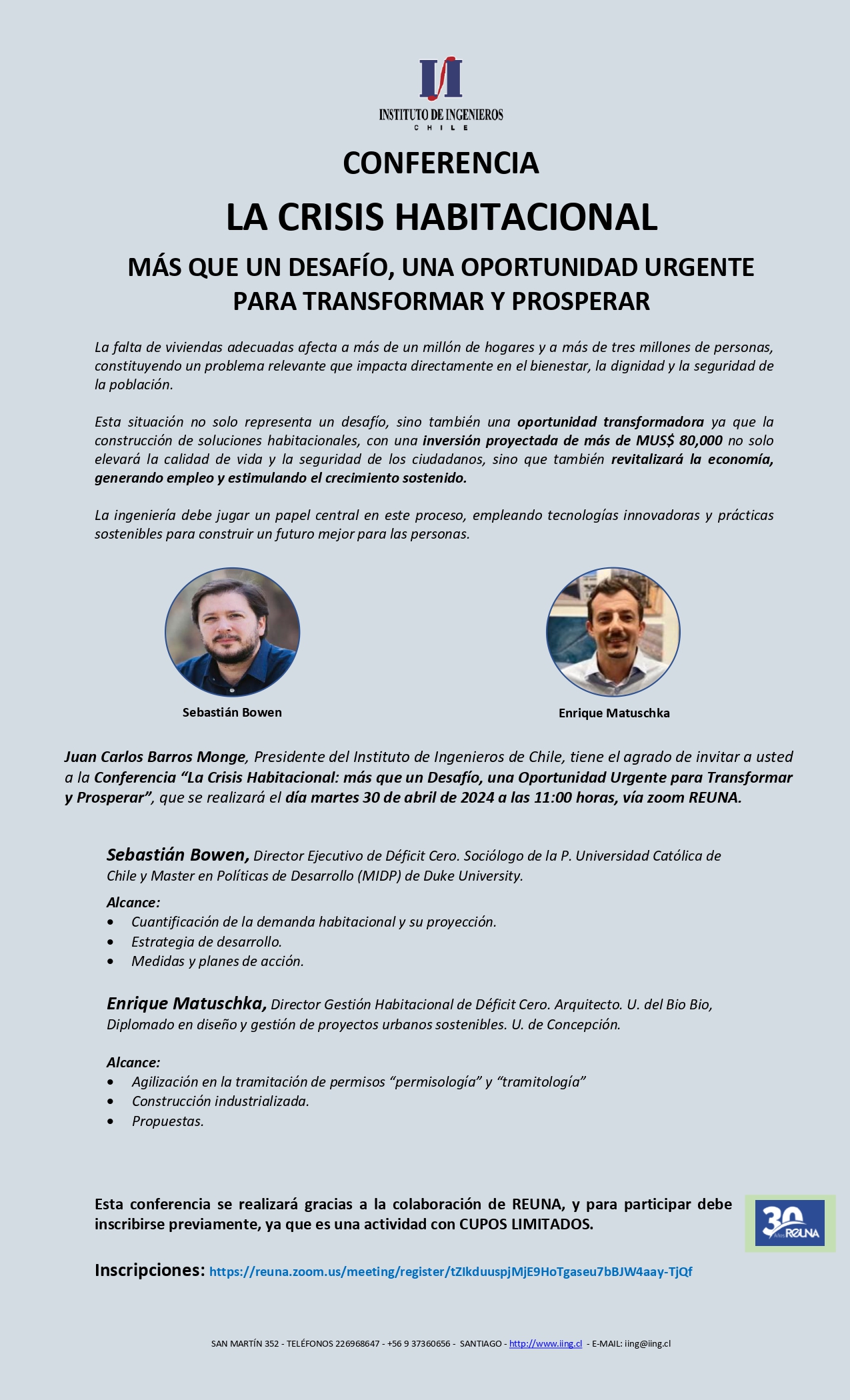 Invitación Instituto de ingenieros invita a la Conferencia “La Crisis Habitacional: más que un Desafío, una Oportunidad Urgente para Transformar y Prosperar” By Estefania Rodriguez Abril 23, 2024 0 595 Compartir WhatsAppLinkedinEmail INSTITUTO DE INGENIEROS – Se espera que esta conferencia sea un aporte a la discusión nacional sobre esta relevante materia INSCRIPCIONES AQUÍ Fuente: Instituto de Ingenieros, Martes 23 de Abril de 2024 INSTITUTO DE INGENIEROS – Se espera que esta conferencia sea un aporte a la discusión nacional sobre esta relevante materia INSCRIPCIONES AQUÍ Fuente: Instituto de Ingenieros, Martes 23 de Abril de 2024 Compartir WhatsAppLinkedinEmail Artículo anteriorAVO1 cerró 2023 con pérdidas por $22 mil millones: concesionaria reconoce impactos por las filtraciones de aguaArtículo siguienteGremio constructor argentino espera que las concesiones avancen como ocurre en Chile TITULARES CPI participa en seminario sobre proyectos de transmisión Titulares Diciembre 4, 2025 Estrategia Nacional redefine distribución urbana del transporte de carga en Chile Titulares Diciembre 4, 2025 Licitación del Transporte Público del Gran Valparaíso recibió 21 ofertas Titulares Diciembre 4, 2025 Juan Pedro Sepúlveda: Hidrógeno y electromovilidad, nueva fuerza para la logística del futuro Titulares Diciembre 4, 2025 Otro megaproyecto en Magallanes pide más tiempo para responder a “ola” de observaciones ambientales Titulares Diciembre 4, 2025 Pitrufquén: evolución territorial y arquitectónica de una ciudad chilena Titulares Diciembre 4, 2025