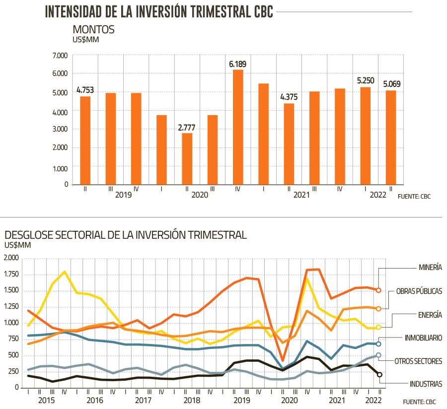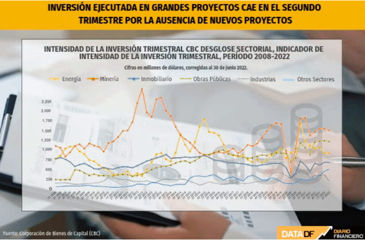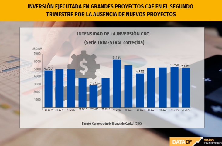 Uno de los principales es el gasto realizado en grandes proyectos de inversión, tanto públicos como privados, catastrados por la Corporación de Bienes de Capital (CBC).
