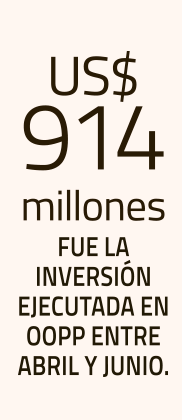En el rubro obras públicas, la inversión ejecutada se expandió un 2% en el segundo trimestre respecto al primero, totalizando US$ 914 millones. Este es el nivel más alto en los últimos dos años (ver gráfico).