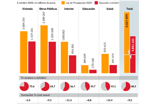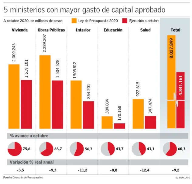 EL MERCURIO – A nivel de carteras, le siguen en incidencia a Obras Públicas el Ministerio del Interior, con una reducción de 11,2% y Vivienda con un retroceso de 3,5%