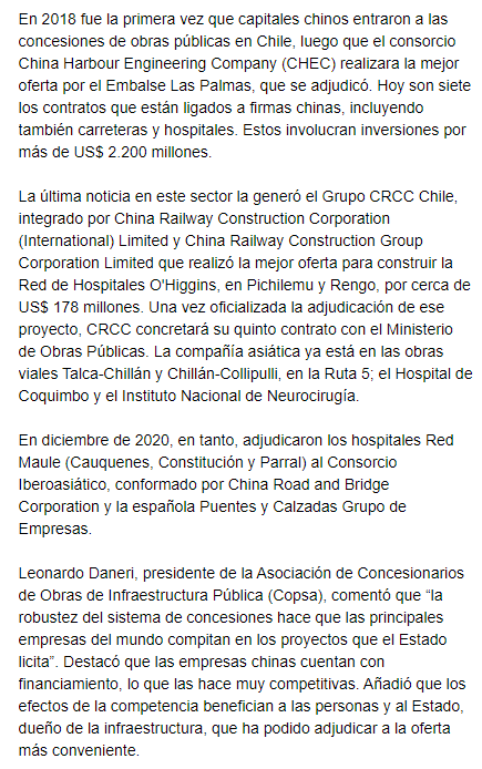 EL MERCURIO – En 2018 fue la primera vez que capitales chinos entraron a las concesiones de obras públicas en Chile.